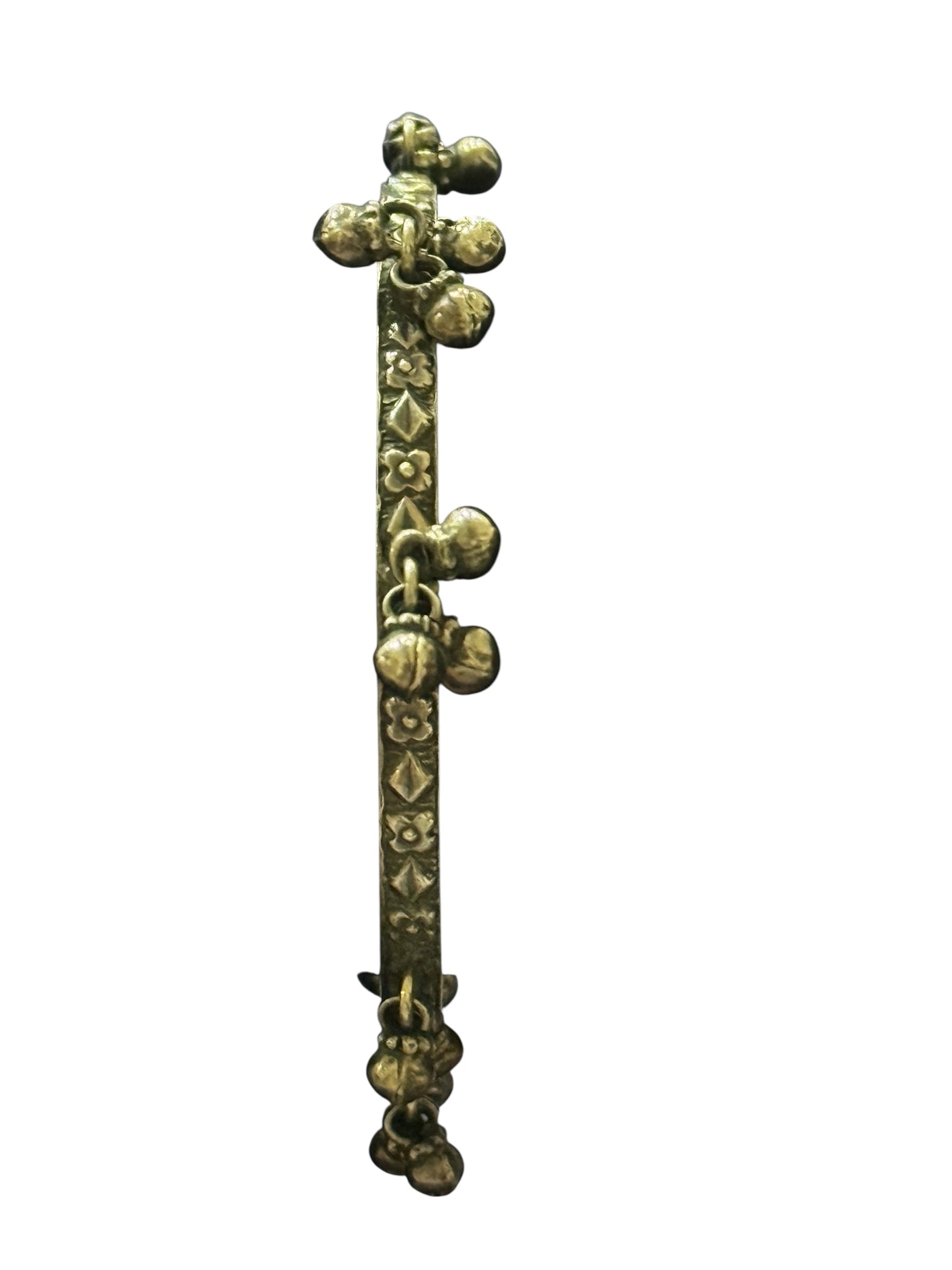 Silver ethnic bangle with carving and bells
