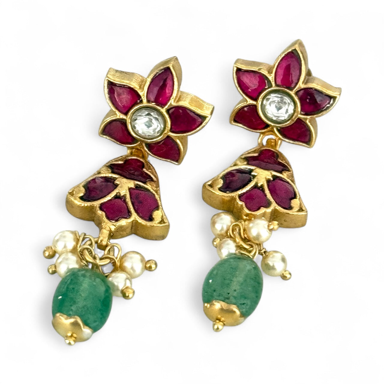 Opulent Gold Floral Emerald Drop Studs